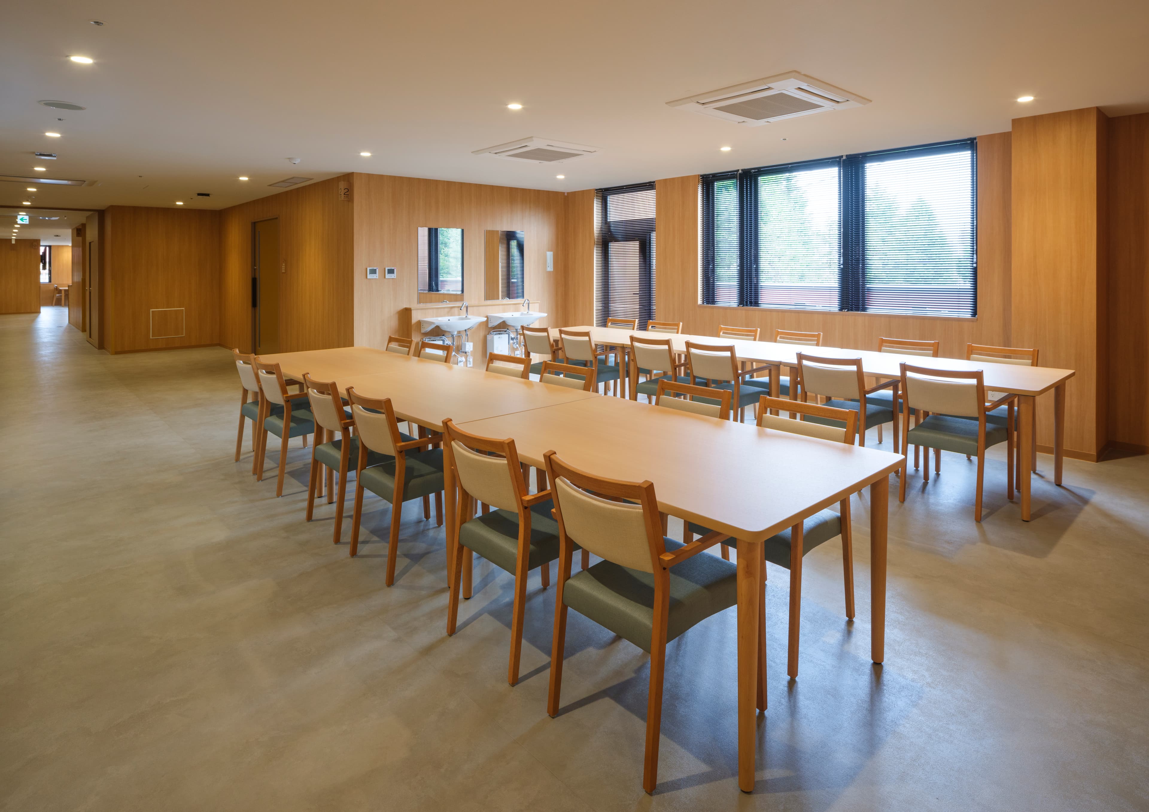各階に、2カ所の多目的スペースが設けられています。こちらは集団リハビリや作業活動を行う場所。日々の小さなイベントもここで開かれます。