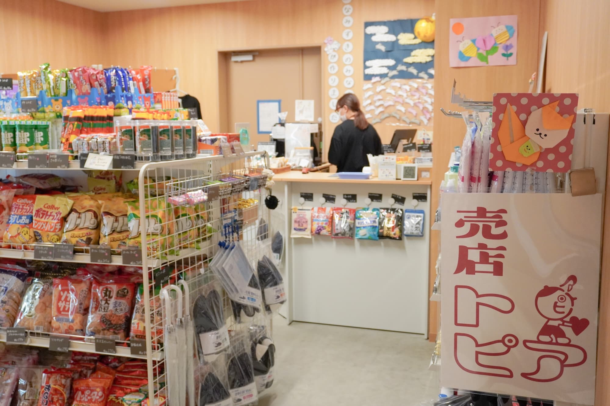 お菓子や軽食、日用品から衣類まで幅広く取り揃える売店トピアは、精神疾患当事者の人たちが働く場にもなっています。新西新井公園を挟んで向かい側にある「OUCHI」(後述)のパンの販売もあり、ご近所の方たちにも開かれています。