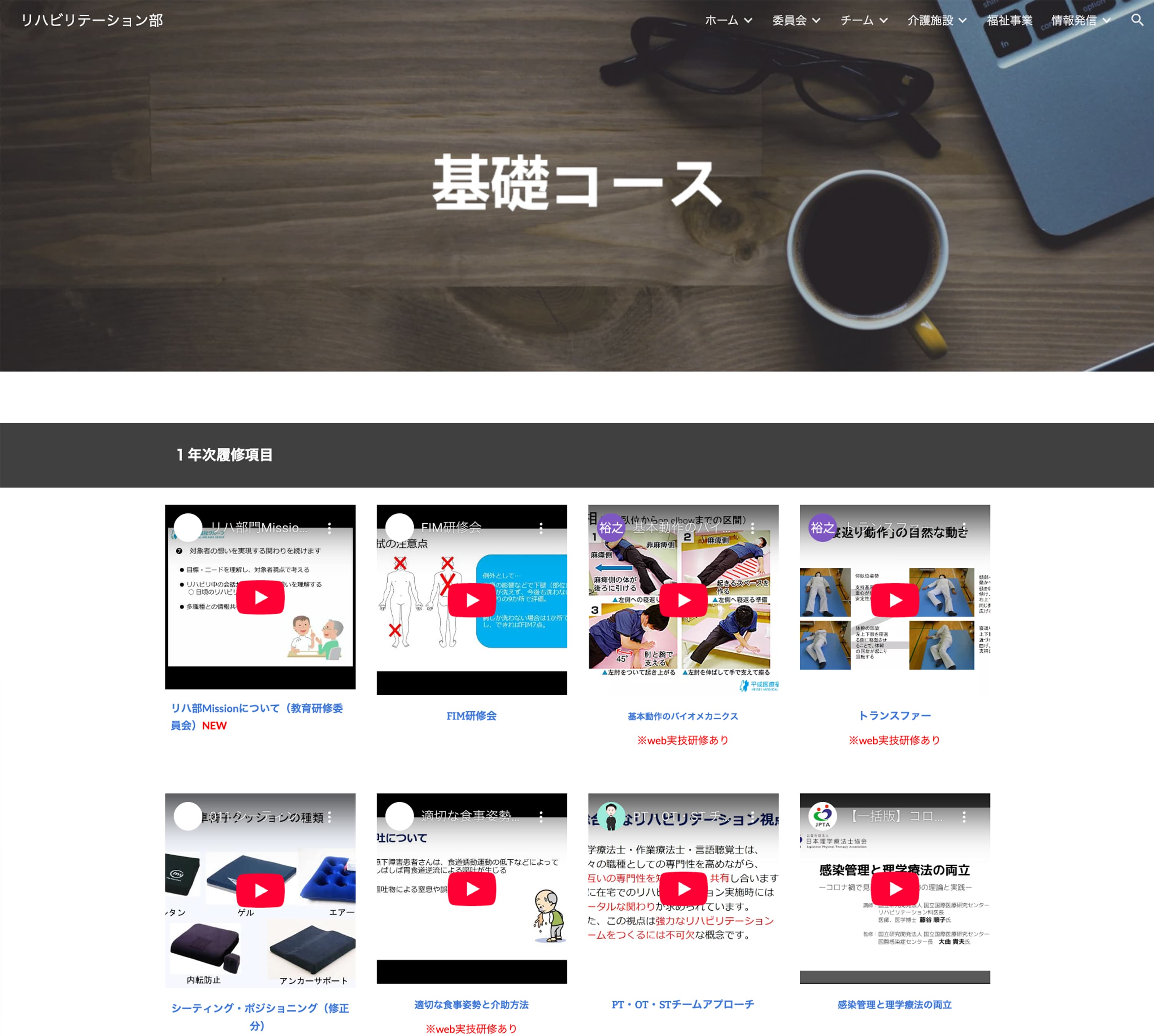 福原:疾患別から、社会人としての基礎から、保険点数の話まで、リハビリに必要な知識がQRコードを読むだけでひととおり学べるしくみがあります。私はグループの教育研修委員会に所属しているんですが、委員会のメンバーで動画コンテンツをつくっています。フレイル・サルコペニアや排泄など、専門的な内容のコンテンツをつくる場合は各チームに相談して、協力してもらうこともありますね。全部で30〜40コンテンツぐらいはあると思います。
