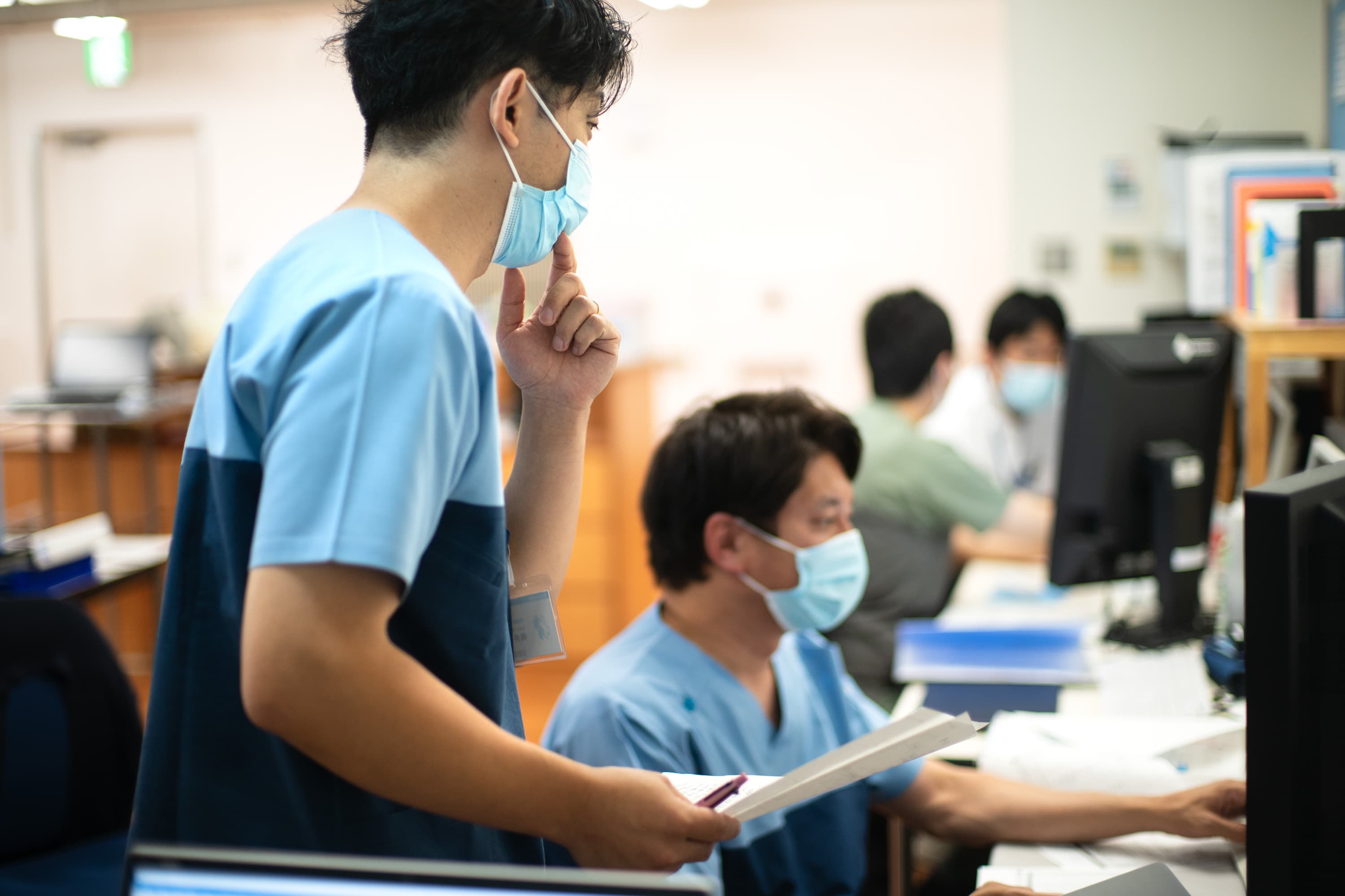 病院では、医師、看護師、介護士、介護福祉士、社会福祉士、薬剤師、療法士、管理栄養士など、さまざまな国家資格を有するスタッフが医療チームを組んで働いています。しかし、各々の専門性や職種間のヒエラルキーにより、フラットな議論が難しいという課題があります。2022年3月以降、同グループでは、病院における上下関係や職種間の垣根を超えてフラットな関係づくりをするために、患者さんに関わるすべての職種の制服の統一を進めています。