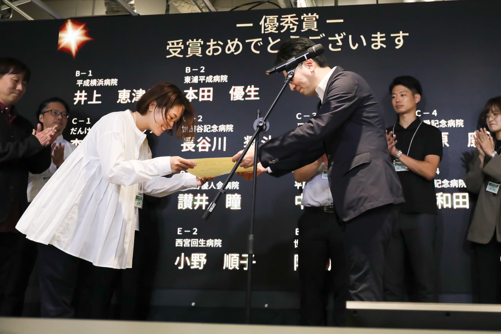 一般演題の発表後、厳正な審査を経て「優秀演題」として13演題が選出されました。さらにそのなかから、平成医療福祉グループ総合研究所(以下、HMW総研)佐方 信夫所長による、さらなる審査を経て「論文化に向けて取り組んでもらいたい演題」として「HMW総研賞」が1演題選出されました。